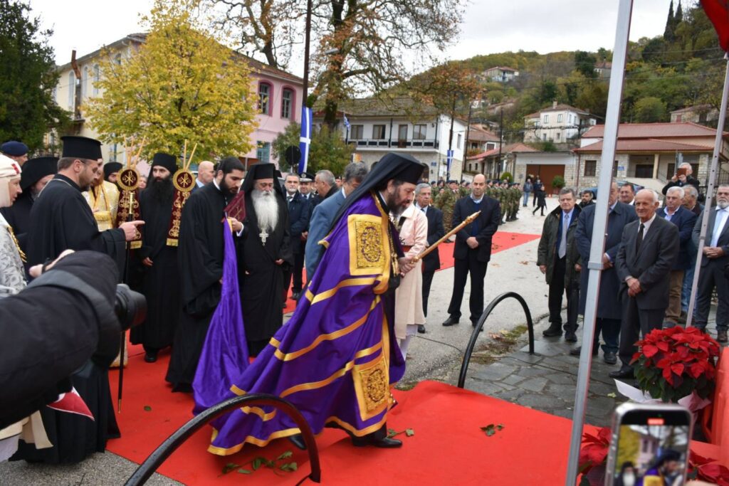 Τη συγκινητική υποδοχή ακολούθησε προσφώνηση από το Δήμαρχο Πωγωνίου κ. Κωνσταντίνο Καψάλη που τόνισε τη μεγάλη πνευματική και ιστορική σημασία της στιγμής. «Με βαθιά συγκίνηση και με πραγματική χαρά, σας καλωσορίζουμε σήμερα στο Δελβινάκι, στην καρδιά του Πωγωνίου και στην ιστορική έδρα της Μητροπόλεώς μας, έναν τόπο που κουβαλά αιώνες προσευχής, κόπου και παράδοσης». Ο κ. Καψάλης τόνισε παράλληλα διαχρονικό ρόλο της Εκκλησίας στα ακριτικά χωριά σημειώνοντας: «Εδώ, σε αυτά τα βουνά και τις κοιλάδες, η Εκκλησία δεν υπήρξε ποτέ κάτι μακρινό. Υπήρξε η παρουσία που στάθηκε δίπλα στον άνθρωπο.Κράτησε ενωμένους τους ανθρώπους όταν όλα γύρω ήταν αβέβαια. Έγινε στήριγμα για τους φτωχούς, παρηγοριά για τους πονεμένους, οδηγός για τους νέους».