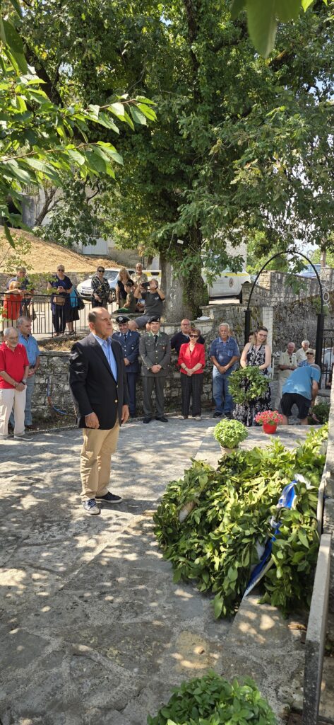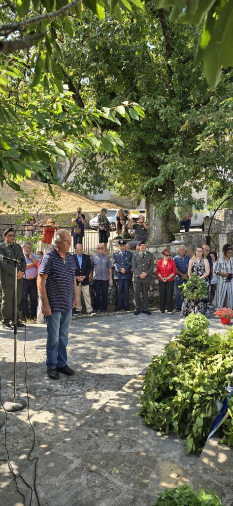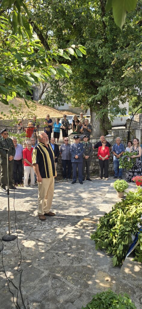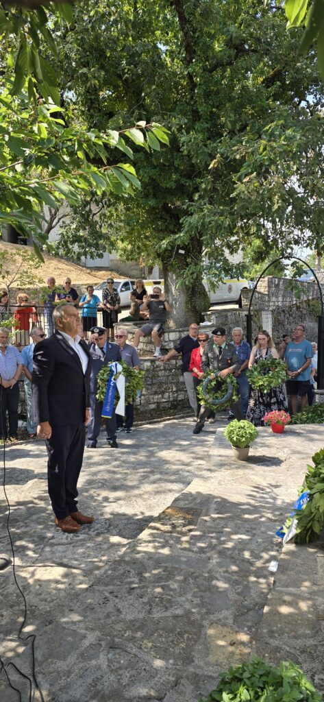 Ο Δήμαρχος Πωγωνίου κ. Κωνσταντίνος Καψάλης υπογράμμισε με συγκίνηση: «Ο αγώνας των θυμάτων δικαιώθηκε γιατί η αντίστασή τους συνέβαλε στον αγώνα κατά του Άξονα. Είναι φορές όμως που οι λέξεις μοιάζουν φτωχές. Φτωχές μπροστά στον πόνο, μπροστά στην απώλεια, μπροστά στη μνήμη. Σήμερα, εδώ, δεν είμαστε μόνο για να θυμηθούμε. Είμαστε για να νιώσουμε. Να σταθούμε με σεβασμό μπροστά στις ψυχές που χάθηκαν με τον πιο βάρβαρο τρόπο. Γιατί κάποιοι θεώρησαν ότι η ανθρώπινη ζωή είναι εμπόδιο στην ελευθερία. Κάθε φορά που βρισκόμαστε εδώ, δεν σηκώνουμε μόνο στεφάνια — σηκώνουμε όρκο. Όρκο ιστορικής αλήθειας, μνήμης και αντίστασης στο μίσος. Αιωνία η μνήμη των 28 ηρώων μας».