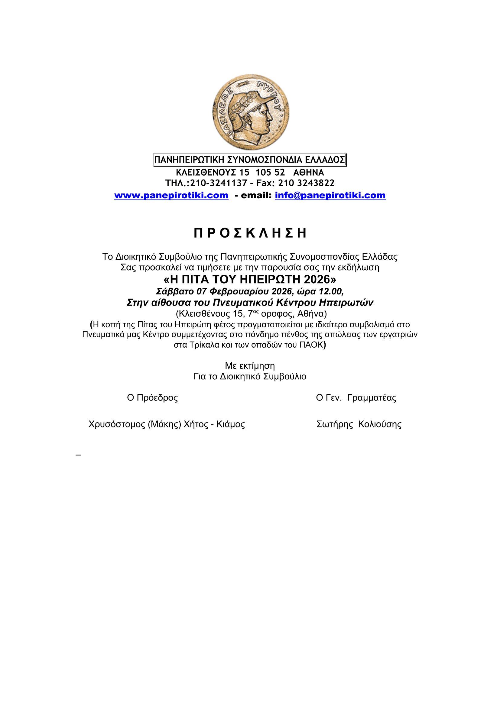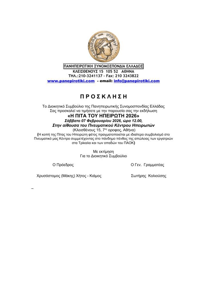 - Έκτακτη συνεδρίαση Δ.Ε. 05-02-26